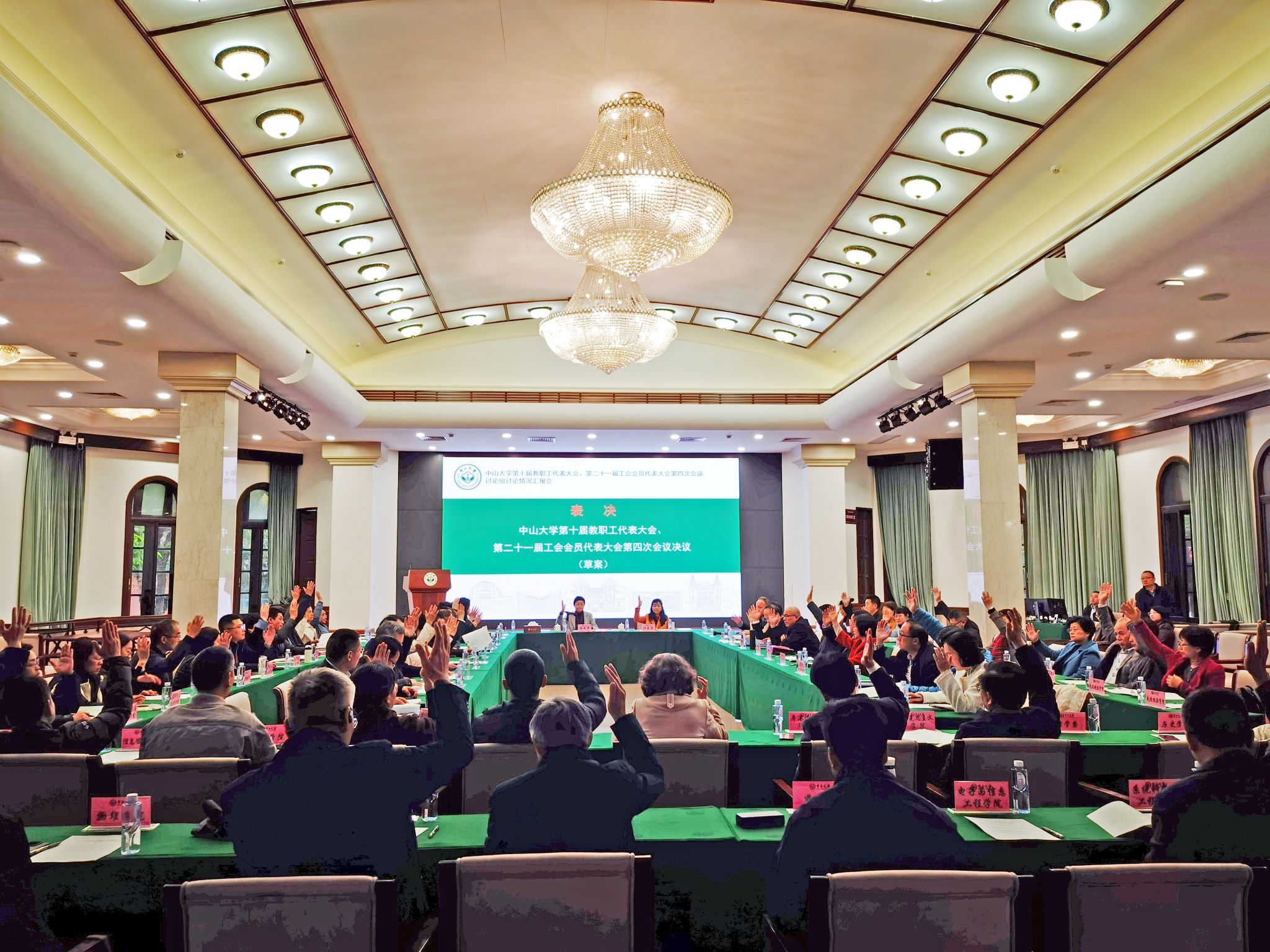 會議表決通過了《中山大學(xué)第十屆教職工代表大會、第二十一屆工會會員代表大會第四次會議決議》。