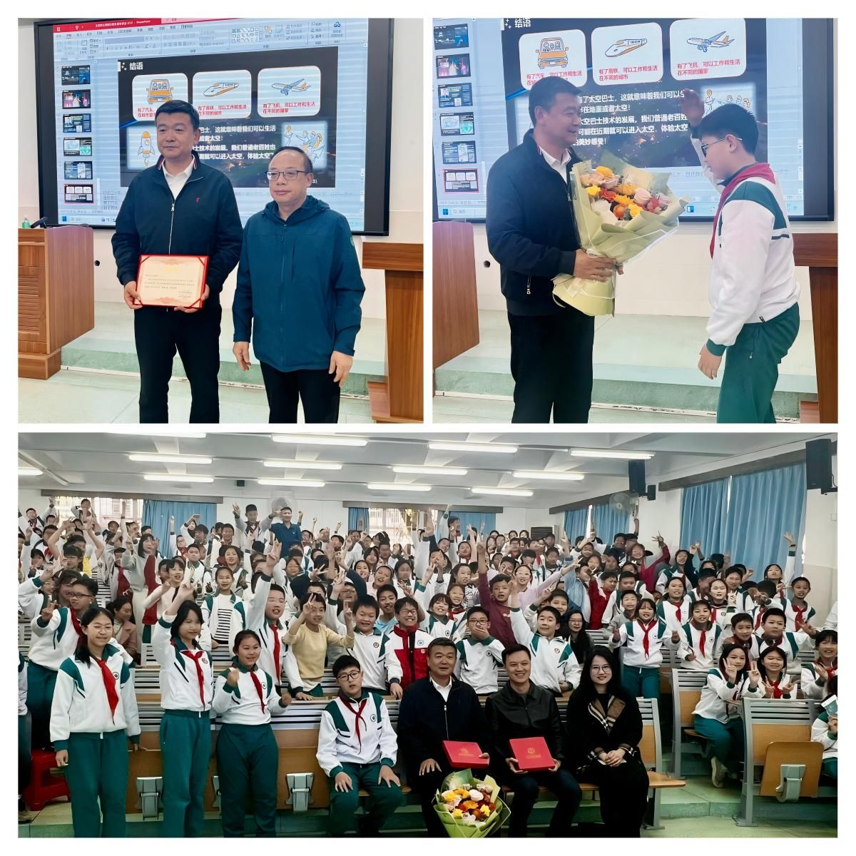 活動最后,中山大學附屬小學校長劉桂榮為陳洪波頒發(fā)科普證書表示感謝,優(yōu)秀少先隊員代表送上鮮花,講座在一片歡聲笑語中圓滿落幕。