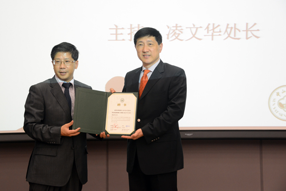 講座開(kāi)始前還舉行了續(xù)聘傅朗為中山大學(xué)兼職教授的聘任儀式。魏明海副校長(zhǎng)代表學(xué)校致辭并向傅朗教授頒發(fā)了聘書(shū)。