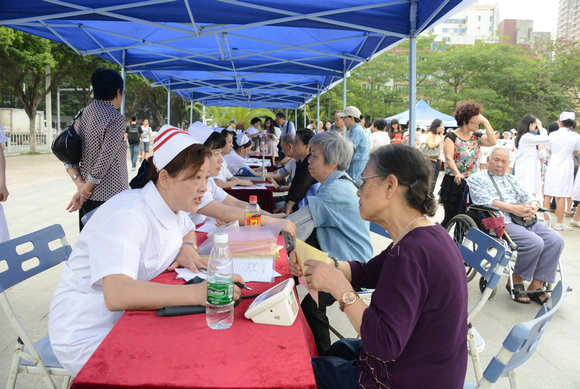 5月11日,101屆國際護士節(jié)前夕,紀念中山大學(xué)護理教育創(chuàng)辦100周年系列活動啟動儀式暨慶祝國際護士節(jié)大型義診活動在越秀區(qū)英雄廣場舉行,我校醫(yī)學(xué)部、醫(yī)院管理處、護理學(xué)院聯(lián)合8家附屬醫(yī)院設(shè)攤義診,200多位護理專業(yè)的醫(yī)學(xué)生重溫南丁格爾誓言。汪建平常務(wù)副校長出席啟動儀式并講話,中華護理學(xué)會成守珍副理事長、廣東省護理學(xué)會梁嘉定副理事長、護理學(xué)院謝文院長、張遠權(quán)書記、校護理委員會覃惠英主任及8家附屬醫(yī)院的護理工作者參加了活動。