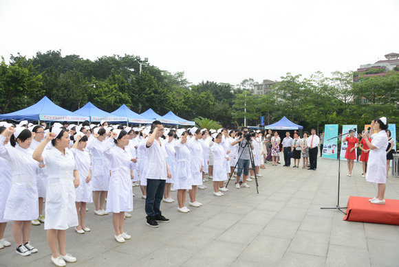 在廣東省護理學(xué)會梁嘉定副理事長的帶領(lǐng)下,未來的“白衣天使”們手握拳頭,莊嚴宣誓:“終身純潔,忠貞職守,盡力提高護理之標準;勿為有損之事,勿取服或故用有害之藥;慎守病人家務(wù)及秘密,竭誠協(xié)助醫(yī)生之診治,務(wù)謀病者之福利?!?/p>