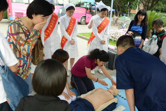 8家附屬醫(yī)院的12個專科護理小組,共約50位護理專家設(shè)攤義診,并宣講急救知識,進行急救操作示范,前往咨詢的市民絡(luò)繹不絕。“這里的護士很專業(yè),很耐心。”懷孕三個月的王女士向婦產(chǎn)科護士詢問孕期護理知識,一旁陪同的丈夫和婆婆臉上露出滿意的微笑。