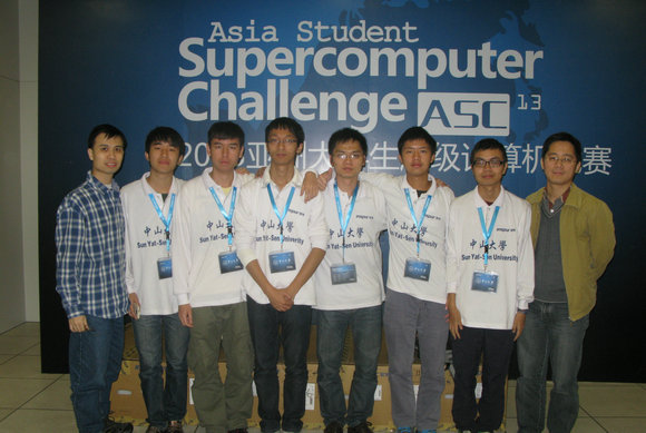 我校參賽代表隊由數(shù)學與計算科學學院許躍生教授科研團隊和網(wǎng)絡與信息技術中心聯(lián)合組建,由張永東、關偉豪、范筑軍、葉緯材(博士后)等老師指導。參賽成員(學生)有數(shù)計學院植美鵬、梁德澎、張良福,軟件學院的陳周榮、陳照,信科院的陳炳煒。參賽隊從今年2月中旬開始準備本次競賽,借助校內的超算平臺以及許躍生教授帶領的“計算科學科研創(chuàng)新團隊”和廣東省計算科學重點實驗室所搭建的“南方一號”GPU集群進行前期的準備訓練和參數(shù)試驗。許躍生教授在代表隊赴申參賽前,作了賽前動員和指導,鼓勵同學們在賽出好成績的同時,學習友隊的優(yōu)點,提高中大的超算水平。代表隊同學們刻苦努力不負重托,通過初賽,最終挺進決賽并獲得亞洲區(qū)第四、中國大陸區(qū)第三的佳績,比去年獲得“首屆中國大學生超級計算機競賽”第四名的成績前進一名。