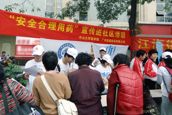 據(jù)悉,“安全合理用藥進(jìn)社區(qū)”是藥學(xué)院團(tuán)委結(jié)合自身專業(yè)優(yōu)勢(shì)打造的校園公益項(xiàng)目。自2011年6月啟動(dòng)以來(lái),得到校學(xué)生處、校團(tuán)委、廣州團(tuán)市委和時(shí)代地產(chǎn)慈善基金會(huì)等單位立項(xiàng)資助。該項(xiàng)目選擇中山大學(xué)南校區(qū)和廣州大學(xué)城周邊社區(qū)作為主要服務(wù)點(diǎn),每月開(kāi)展兩到三次社區(qū)服務(wù)活動(dòng),旨在秉承服務(wù)學(xué)習(xí)的理念,積極搭建藥學(xué)專業(yè)學(xué)生公益實(shí)踐平臺(tái),讓參與同學(xué)“從服務(wù)中學(xué)習(xí)” ,培養(yǎng)學(xué)生社會(huì)責(zé)任感和人文情懷,并積極探索校園公益項(xiàng)目的可持續(xù)之路。