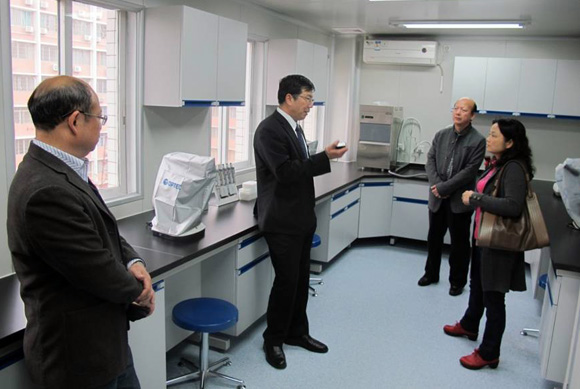梁劬(中)參觀SYSU-MSU熱帶蟲(chóng)媒控制聯(lián)合研究中心實(shí)驗(yàn)室