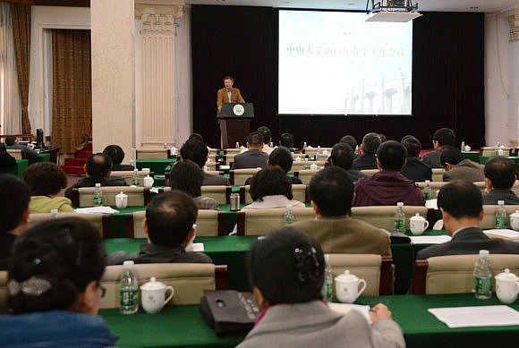 2月21日至22日,中山大學(xué)2013年春季工作會(huì)議在南校區(qū)舉行。此次會(huì)議的主題是部署并研討落實(shí)2013年學(xué)校全年工作,會(huì)議為期一天半。鄭德濤書記、許寧生校長分別在大會(huì)上就2013年重點(diǎn)工作進(jìn)行部署,全體校領(lǐng)導(dǎo)、校長助理,各二級(jí)黨委(黨總支)、黨工委,校機(jī)關(guān)各部、處、室,各學(xué)院、直屬系,各直屬單位,各附屬單位,后勤集團(tuán),產(chǎn)業(yè)集團(tuán)負(fù)責(zé)人出席會(huì)議。