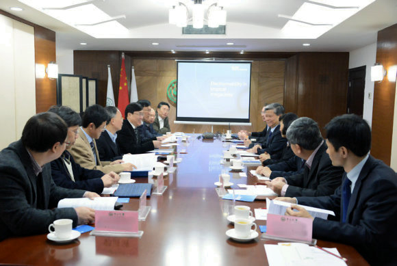 1月31日上午,新加坡南洋理工大學(xué)(Nanyang Technological University,簡稱NTU)校務(wù)總監(jiān)兼南洋創(chuàng)新與企業(yè)服務(wù)總裁藍(lán)欽揚(yáng)教授、德國慕尼黑工業(yè)大學(xué)(Technical University of Munich,簡稱TUM)副校長孟立秋教授率代表團(tuán)一行11人來訪我校。代表團(tuán)成員還包括中新廣州知識城投資開發(fā)有限公司、中新廣州知識城管理委員會等代表。