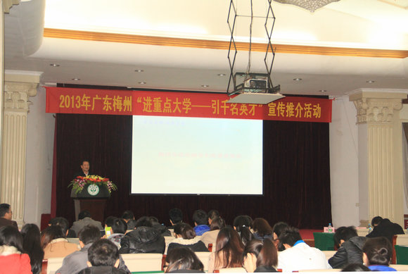 1月11日上午,梅州市陳建青副市長(zhǎng)率團(tuán)來(lái)我校舉辦2013年梅州市“進(jìn)重點(diǎn)大學(xué)、引千名英才”宣傳推介活動(dòng)。我校黨委朱孔軍副書記、黨委組織部何曉鐘副部長(zhǎng)、部分院系副書記、輔導(dǎo)員出席了活動(dòng)?;顒?dòng)由就業(yè)指導(dǎo)中心李明章主任主持。
