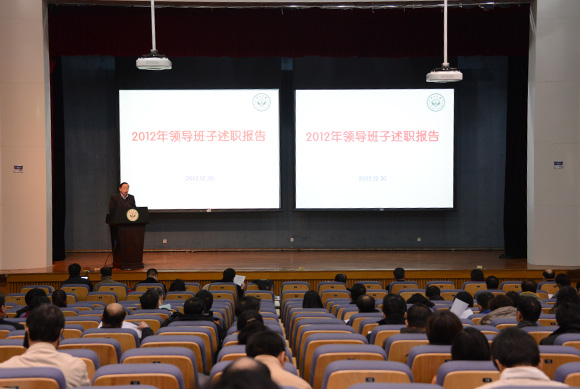 12月30日下午,全校2012年度考核述職測評大會在南校區(qū)舉行。會議由鄭德濤書記主持,全體校領(lǐng)導(dǎo)、部分單位負責(zé)人在會上作年度述職報告?,F(xiàn)任校領(lǐng)導(dǎo)、老領(lǐng)導(dǎo)、兩委委員、職能部門和二級單位主要負責(zé)人、專任教師代表、民主黨派和無黨派人士代表、教代會代表、離退休老同志代表、學(xué)生代表等200余名師生參加了述職測評大會。