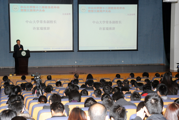 12月20日,中山大學(xué)第十二屆信息化工作會(huì)議暨第三屆用戶大會(huì)在南校區(qū)舉行。我校常務(wù)副校長(zhǎng)許家瑞、廣東省教育技術(shù)中心主任兼廣東省電化教育館館長(zhǎng)彭紅光出席會(huì)議并致辭。全校師生參與熱情高漲,來自機(jī)關(guān)部處、院系、學(xué)生組織共500多人參加了會(huì)議。