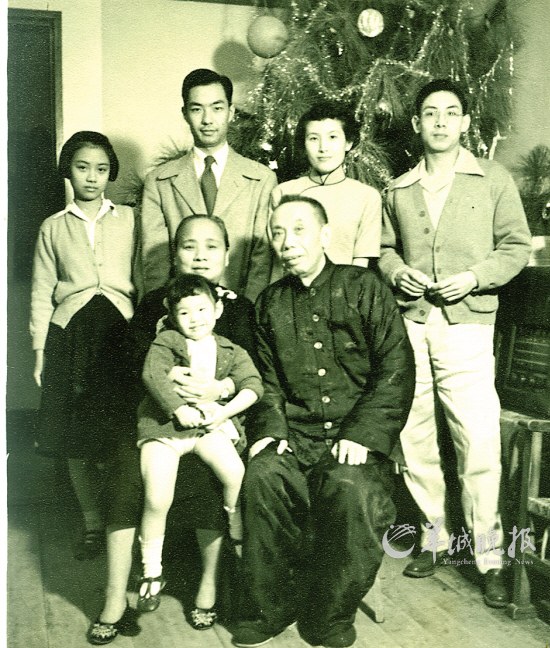 鄒魯一家攝于1953年圣誕。前排:鄒魯、夫人趙淑嘉,孫鄒英;后排右起:子鄒廣、媳戚繼藺、子鄒梅、女鄒方