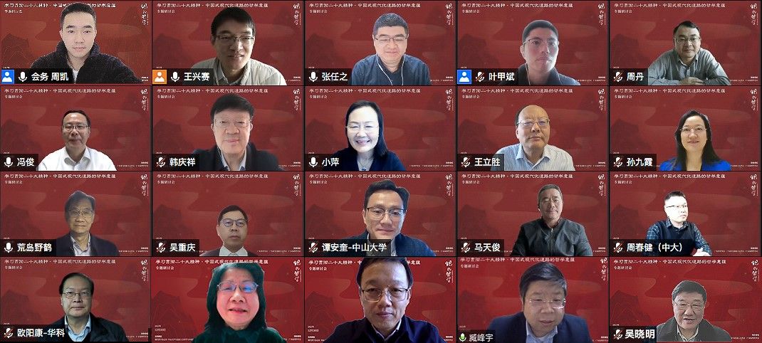 廣東省社科聯(lián)黨組書記、主席張知干同志作了熱情洋溢的視頻致辭。他指出,在黨的二十大精神愈發(fā)深入人心、正在落地生根的關鍵階段,來自國內相關領域的資深專家相聚云端,聚焦“中國式現(xiàn)代化道路的哲學意蘊”這個重大課題,貫通道理、學理、哲理,深化對黨的二十大精神的學習貫徹,具有重要學術價值和現(xiàn)實引領意義。