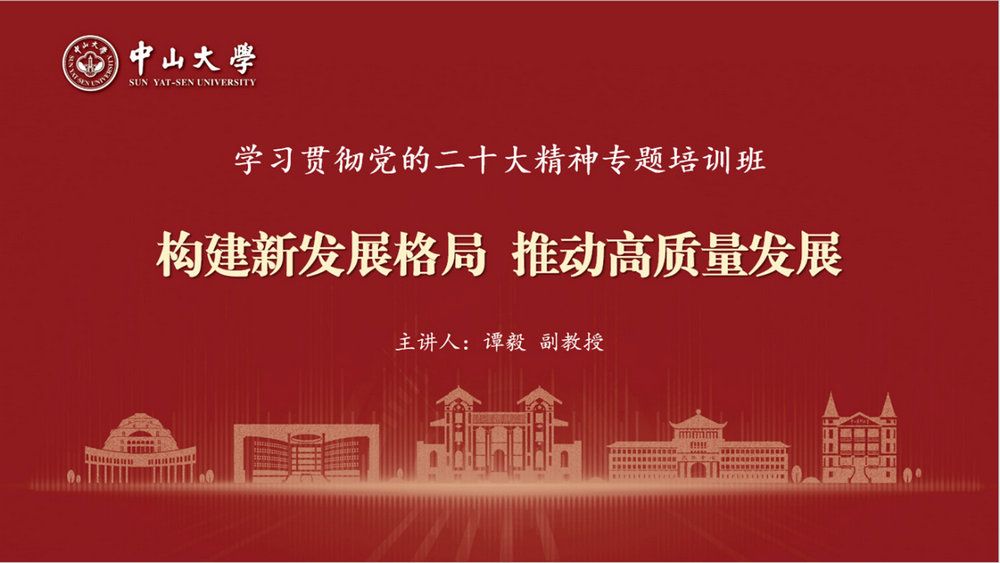 中大新聞網(wǎng)廣州1月13日電(通訊員陳美琪)1月13日上午,中山大學(xué)學(xué)習(xí)貫徹黨的二十大精神專題培訓(xùn)班第四講在線順利舉辦。馬克思主義學(xué)院譚毅副教授受邀作“構(gòu)建新發(fā)展格局,推動(dòng)高質(zhì)量發(fā)展”專題輔導(dǎo)報(bào)告。學(xué)校中層領(lǐng)導(dǎo)人員、黨支部書記共1200余人參加培訓(xùn)。校黨委組織部部長(zhǎng)楊曉萌主持會(huì)議。