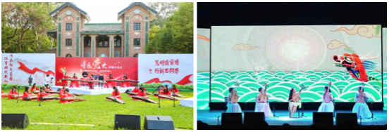 為慶祝中國共產(chǎn)黨成立100周年,在師生中開展黨史學(xué)習(xí)教育,弘揚(yáng)偉大建黨精神,弘揚(yáng)中華優(yōu)秀傳統(tǒng)文化,致敬偉大新時(shí)代,學(xué)校舉辦了系列以黨史為題材的藝術(shù)活動(dòng)。2021年舉辦“詩樂黨史”草地音樂會(huì),“弦樂四重奏”草地音樂會(huì)、“我和我的祖國”民族音樂專場音樂會(huì)、“在燦爛陽光下”系列草地音樂會(huì)等9場活動(dòng),覆蓋三校區(qū)五校園全體師生員工,提升校園文化氛圍。在草地音樂會(huì)系列活動(dòng)中,融入了大量傳統(tǒng)民樂表演,以民族音樂為載體,開展浸潤式美育,弘揚(yáng)中華優(yōu)秀傳統(tǒng)文化。