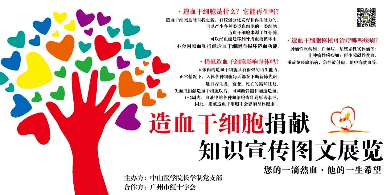 血液病對人類健康造成極大的威脅,造血干細胞移植不僅可以根治白血病,還可治療許多重癥血液病。中華骨髓庫是挽救血液病患者生命,造福人民的公益事業(yè),號召更多造血干細胞捐獻志愿者登記入庫,就能讓更多血液病患者重燃生存希望。中山醫(yī)學(xué)院長學(xué)制學(xué)生自 2009 年起在廣州市紅十字會指導(dǎo)下,組織學(xué)生志愿者隊伍,面向朝氣蓬勃的大學(xué)生群體,舉辦“造血干細胞捐獻”科普宣傳教育活動,號召同學(xué)們積極報名進行造血干細胞捐獻,并協(xié)助廣州市紅十字會的專業(yè)團隊采血入庫,為助力健康中國貢獻青年力量。