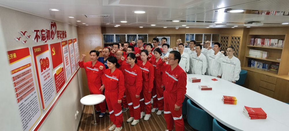 科考設備海試驗收航次第一航段臨時黨支部全體黨員在科考船上重溫入黨誓詞