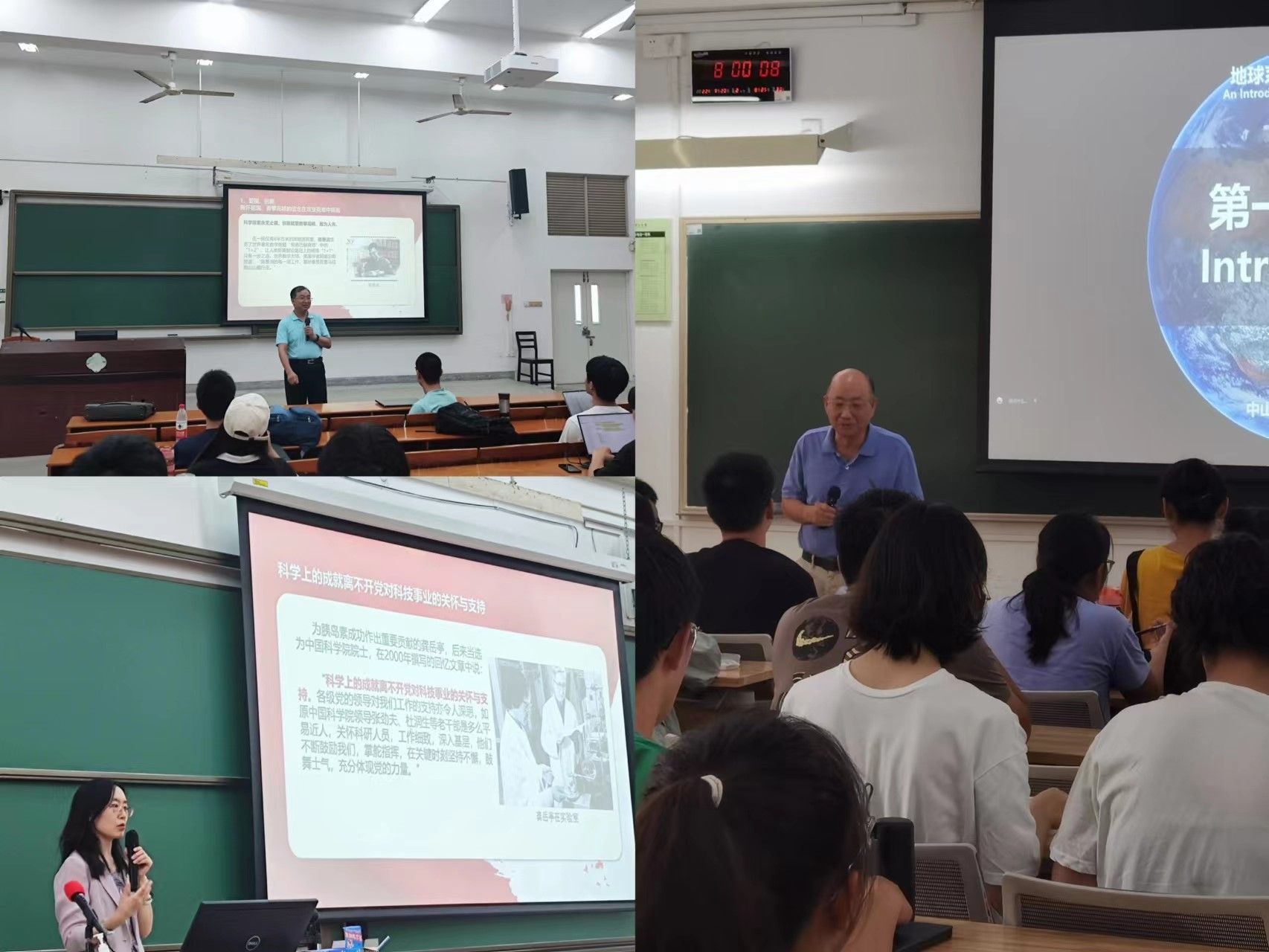 右邊:戴永久院士為22級本科生講授《地球系統(tǒng)科學概論》