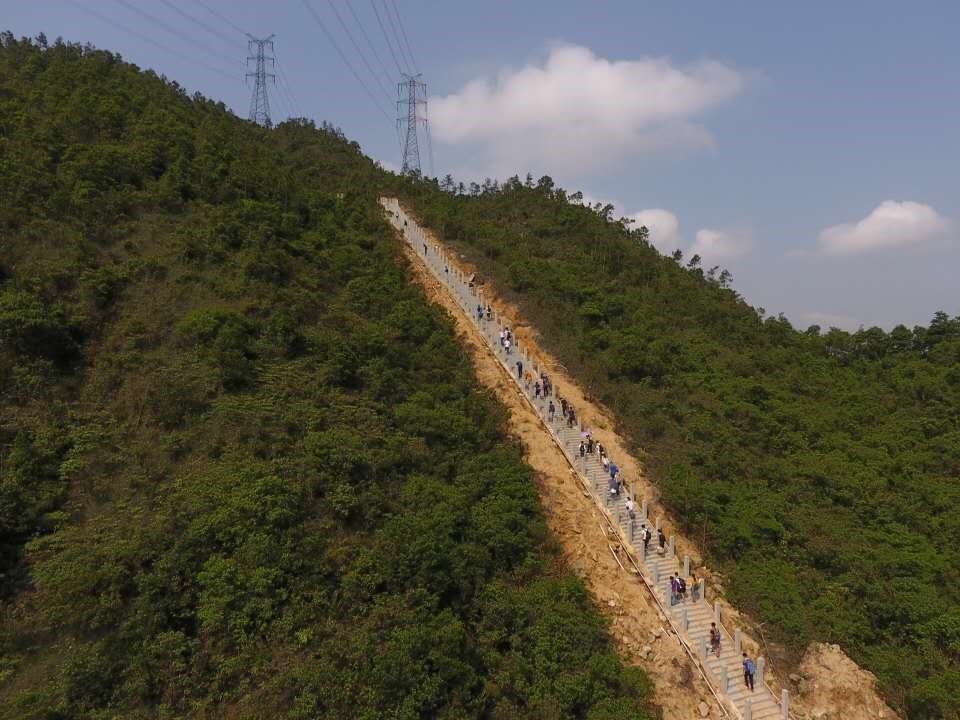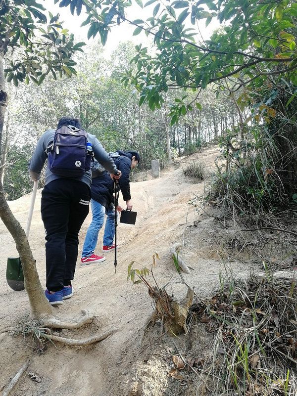 測(cè)距臺(tái)站位于鳳凰山頂,之前沒(méi)有任何道路通行,在確定站址后,為了搶工期,山頂基建和上山道路同時(shí)施工。上山道路依山而建,登上海拔約400m的臺(tái)站全程約7.6km。在山頂臺(tái)站地基勘探、建設(shè)初期我們?yōu)榱斯?jié)約登山時(shí)間,多是循著山頂施工隊(duì)踏出的小道攀爬上去,山路崎嶇坡陡,好幾次踩到青草虛土滑倒差點(diǎn)滾落受傷。上山道路的土路連通到山頂后情況好了一些,我們時(shí)而可以搭工程車輛上山,但遇到的問(wèn)題也逐漸顯現(xiàn)出來(lái),由于山路依山而建,彎急坡陡,可以說(shuō)是山路十八彎,坐在車?yán)锒紩?huì)驚出一身汗。正是先有了搭車的經(jīng)驗(yàn),讓我想到了臺(tái)站的1.2m望遠(yuǎn)鏡系統(tǒng)為大型精密儀器,體積大重量沉,需要整機(jī)運(yùn)輸至山頂?shù)耐瑫r(shí)還要保障大型吊裝車輛上山進(jìn)行設(shè)備的安裝,而山上道路在設(shè)計(jì)之初并沒(méi)有考慮到這些特殊情況,它窄的地方僅容單車勉強(qiáng)通行,尤其一旦卡在S彎處則進(jìn)退兩難,為確保車輛順利通行,期間團(tuán)隊(duì)成員多次徒步往返于上山道路,結(jié)合設(shè)備運(yùn)輸車輛轉(zhuǎn)彎半徑對(duì)各種可能的路況和會(huì)車位置進(jìn)行實(shí)地勘察和測(cè)量,這為確保設(shè)備車輛安全無(wú)障礙通行提供了保障。