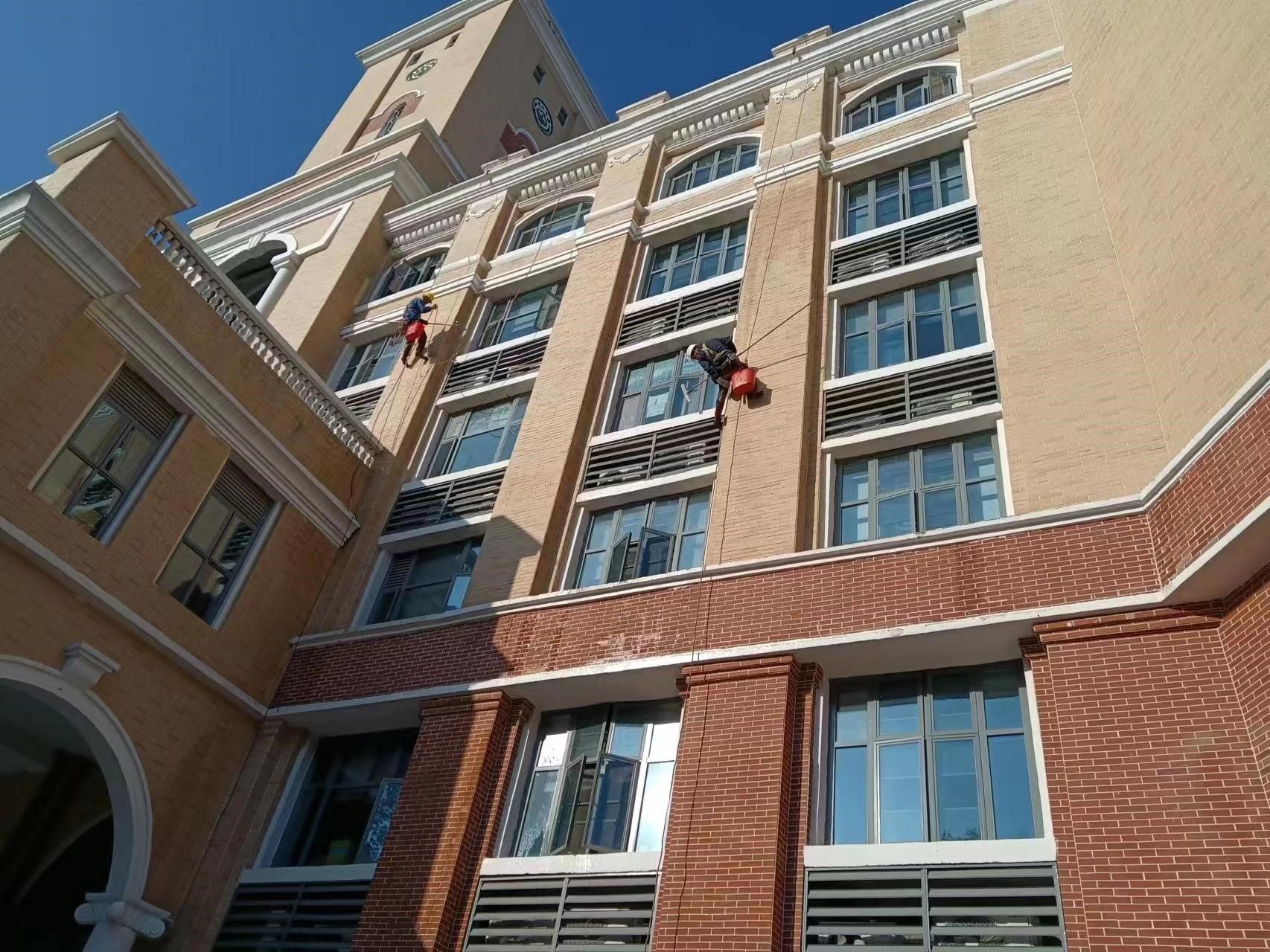 物業(yè)工作人員進(jìn)行外墻清洗