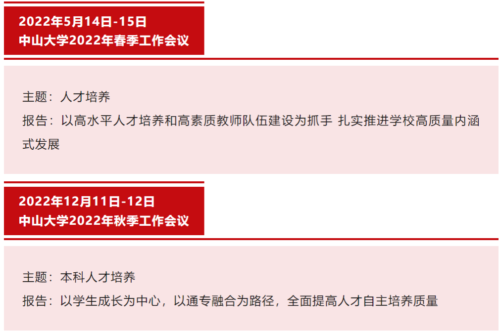 高松校長(zhǎng)說(shuō)道:“這次春季工作會(huì)議,我們主題依然是人才培養(yǎng),聚焦研究生教育,希望和大家一起深入探討關(guān)于研究生培養(yǎng)的一些重要問(wèn)題?!边@是高松校長(zhǎng)上任以來(lái)第三次將學(xué)校春秋季工作會(huì)議主題聚焦在“人才培養(yǎng)”上,與院士、教授和全體領(lǐng)導(dǎo)干部齊聚一堂,就學(xué)生成長(zhǎng)成才展開(kāi)持續(xù)研討,充分體現(xiàn)了中山大學(xué)以立德樹(shù)人為根本的強(qiáng)烈使命感和努力提高人才培養(yǎng)質(zhì)量的緊迫感。
