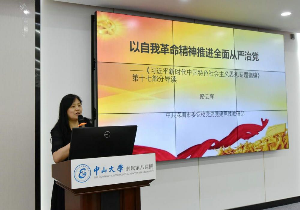 中大新聞網(wǎng)訊(通訊員佟艷婷)5月10日,附屬第八醫(yī)院黨委舉行學(xué)習(xí)貫徹習(xí)近平新時(shí)代中國特色社會(huì)主義思想主題教育讀書班專題輔導(dǎo)報(bào)告會(huì),邀請深圳市委黨校路云輝教授作題為“以自我革命精神推進(jìn)全面從嚴(yán)治黨——《習(xí)近平新時(shí)代中國特色社會(huì)主義思想專題摘編》第十七部分導(dǎo)讀”的專題輔導(dǎo)報(bào)告。中山大學(xué)主題教育巡回指導(dǎo)組第八組副組長羅干坤列席會(huì)議并作指導(dǎo)講話。醫(yī)院領(lǐng)導(dǎo)班子成員、各黨支部書記50余人參加學(xué)習(xí)。