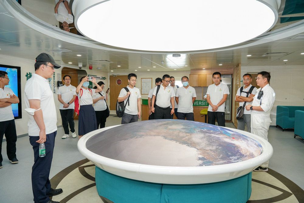 5月21日下午,培訓班學員考察了停泊于珠海的“中山大學”號海洋綜合科考實習船。學校目前擁有6800噸“中山大學”號海洋綜合科考實習船、“中山大學極地”號破冰船、“珠海云”智能無人系統(tǒng)母船,具有卓越的科技競爭力?!爸猩酱髮W”號是目前國內(nèi)設計排水量最大、綜合科考性最強、創(chuàng)新技術亮點最多的新一代現(xiàn)代化綜合科考船,也是集多學科、多功能、多技術手段為一體的海上移動科研平臺與人才培養(yǎng)基地,被稱為中山大學“第六校園”。在金德飛船長及其團隊的講解引導下,學員們參觀了駕駛室、實驗室,了解科考船的出行任務和科技創(chuàng)新,了解到每次出航必建立臨時黨支部,把支部建在科考船上,發(fā)揮臨時支部的戰(zhàn)斗堡壘作用和黨員先鋒模范作用。站在甲板上,眺望大海,學員們切身體會到科技理念與人文關懷的交相輝映,全面認識了學校事業(yè)布局謀篇的綜合進展,由衷表示要始終心懷“國之大者”、力持國之重器,以科研、教學、服務社會的知行合一,參與學校事業(yè)的高質(zhì)量內(nèi)涵式發(fā)展,積極擔當作為,迎接百年校慶。