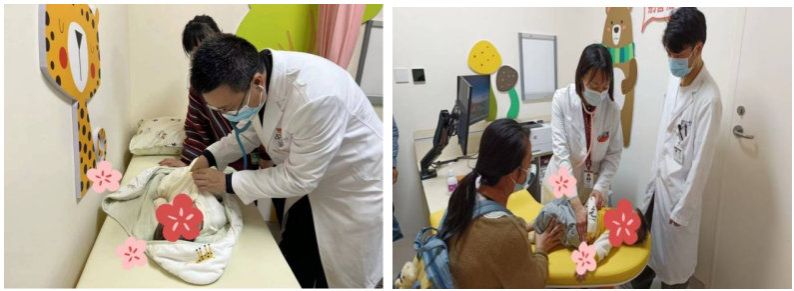 副主任醫(yī)師沈振宇、主任醫(yī)師余慕雪在給患兒做檢查