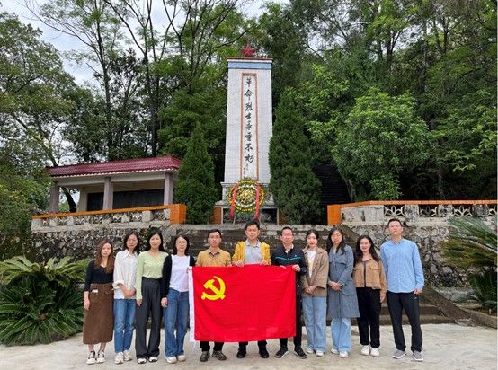 大家還來到革命烈士陵園瞻仰紅色革命傳統(tǒng)教育基地連藍江烈士紀念碑。在紀念碑前,大家認真聆聽黃旭俊書記介紹解放戰(zhàn)爭期間革命先輩解放連陽地區(qū)的紅色故事,重溫了革命先烈在豐陽鎮(zhèn)浴血戰(zhàn)斗的英勇事跡和光輝歲月,并在紀念碑前鞠躬致敬。隨后,大家來到中山大學(xué)茶博園。在篤行園,大家在聽取黃旭俊書記介紹學(xué)校幫扶茶農(nóng)進行茶園規(guī)劃設(shè)計的同時,自己也親手栽種一棵棵幼小的茶樹苗,在鄉(xiāng)村振興這片熱土里埋下了希望的種子。