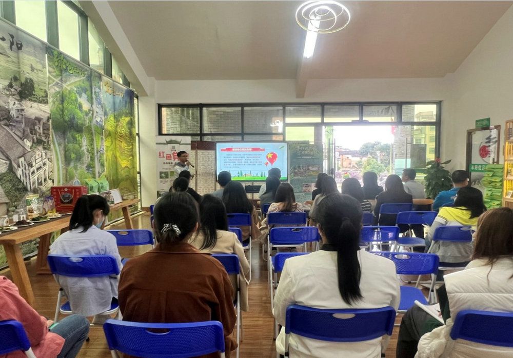 在連州豐陽電子商務(wù)中心,學(xué)校派駐連州市豐陽鎮(zhèn)幫扶工作隊、大富頭村駐村第一書記黃旭俊向大家介紹黨中央鄉(xiāng)村振興的相關(guān)政策、廣東省鄉(xiāng)村振興的三大目標與工作機制,同時結(jié)合豐陽鎮(zhèn)產(chǎn)業(yè)、人口、面積、脫貧情況等多方面情況,詳細講解了近幾年學(xué)校在豐陽鎮(zhèn)鄉(xiāng)村振興工作中因地制宜融合創(chuàng)新發(fā)展模式,在鄉(xiāng)村振興工作中所取得的成績。