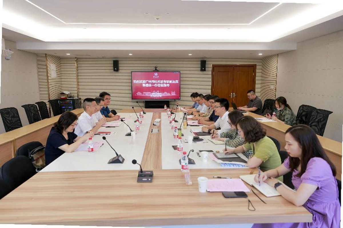 中大新聞網(wǎng)廣州5月30日電(通訊員易夢然、陳詩詩)5月26日下午,廣州市社科聯(lián)調(diào)研組一行到訪我校開展專題調(diào)研。本次調(diào)研圍繞“哲學(xué)社會(huì)科學(xué)實(shí)驗(yàn)室建設(shè)”的主題展開座談。廣州市社科聯(lián)專職副主席郭德焱,廣州市社科聯(lián)規(guī)劃部部長楊霖、副部長吳晴、三級調(diào)研員許小龍,中山大學(xué)副校長謝湜教授,人文社會(huì)科學(xué)處處長張偉教授,以及學(xué)校三個(gè)獲批省哲學(xué)社會(huì)科學(xué)重點(diǎn)實(shí)驗(yàn)室的代表等出席座談會(huì)。會(huì)議由張偉主持,雙方單位圍繞主題進(jìn)行深入的探討與交流。