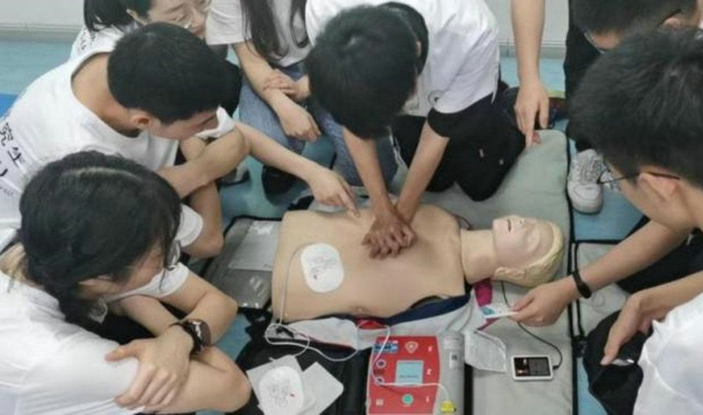 支教團成員在培訓現(xiàn)場進行急救實操訓練