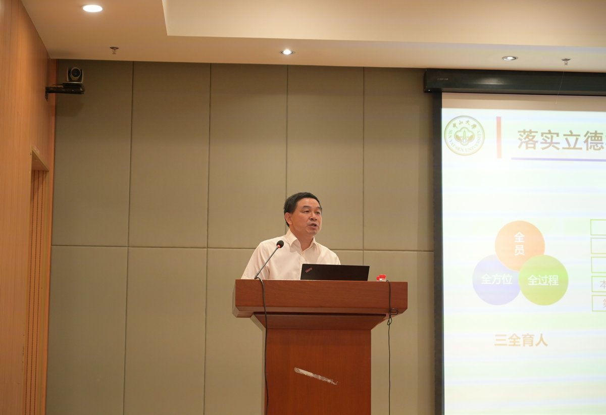 中大新聞網(wǎng)廣州6月7日電(通訊員董秋娉)結(jié)合學(xué)習(xí)貫徹習(xí)近平新時(shí)代中國(guó)特色社會(huì)主義思想主題教育,6月2日上午,劉濟(jì)科副校長(zhǎng)在廣州校區(qū)東校園化學(xué)材料綜合樓以“學(xué)習(xí)貫徹習(xí)近平新時(shí)代中國(guó)特色社會(huì)主義思想 以學(xué)生成長(zhǎng)為中心 全面落實(shí)立德樹人根本任務(wù)”為題,為材料科學(xué)與工程學(xué)院、系統(tǒng)科學(xué)與工程學(xué)院的本科生和研究生近200人講授思政課。