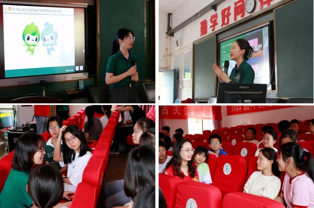 同時(shí),學(xué)院師生前往南昌經(jīng)開區(qū)樵舍鎮(zhèn)第二中學(xué)開展“環(huán)保科普”與“筑夢(mèng)大學(xué)”主題宣講活動(dòng)。碩士生張晴以世界環(huán)境日的發(fā)展歷程為切入,講述中國(guó)的“雙碳故事”,傳播綠色低碳理念;本科生蔡曉嵐以“我在中山大學(xué)的四年”為主題向同學(xué)們講述了在中山大學(xué)求學(xué)成長(zhǎng)的故事,勉勵(lì)大家勤學(xué)奮斗,考取理想大學(xué)。主題宣講過(guò)后,環(huán)境學(xué)院師生組織選調(diào)生和當(dāng)?shù)貙W(xué)生以小組為單位,圍繞生態(tài)文明知識(shí)、未來(lái)專業(yè)選擇等問(wèn)題開展“真人圖書館”主題活動(dòng)。通過(guò)面對(duì)面的交流,志愿者們?yōu)閷W(xué)生們答疑解惑,鼓勵(lì)同學(xué)們樹立遠(yuǎn)大理想,未來(lái)為我國(guó)生態(tài)文明建設(shè)貢獻(xiàn)力量。