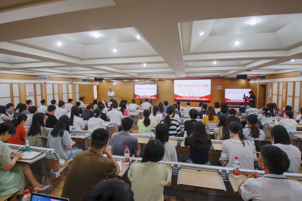 “60多年來(lái),特別是改革開(kāi)放40多年來(lái),人民代表大會(huì)制度為黨領(lǐng)導(dǎo)人民創(chuàng)造經(jīng)濟(jì)快速發(fā)展奇跡和社會(huì)長(zhǎng)期穩(wěn)定奇跡提供了重要制度保障?!眹@習(xí)近平總書(shū)記關(guān)于堅(jiān)持和完善人民代表大會(huì)制度的重要思想、人民代表大會(huì)制度概述、人民代表大會(huì)的組織與運(yùn)行方式、十四屆全國(guó)人大一次會(huì)議及人大常委會(huì)的情況四個(gè)方面,高松校長(zhǎng)用一組組數(shù)據(jù)、一個(gè)個(gè)案例生動(dòng)闡釋了人民大會(huì)制度如何在中國(guó)落地生根,造福于人民,為師生們帶來(lái)了一場(chǎng)精彩紛呈,富有啟發(fā)的專題報(bào)告。