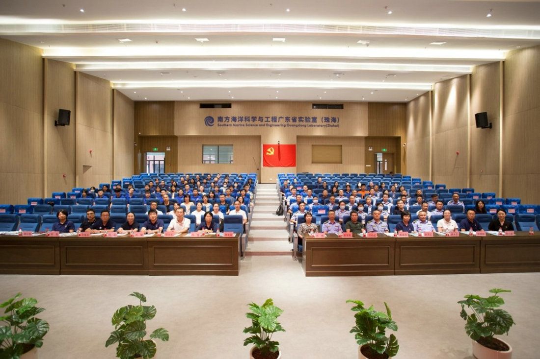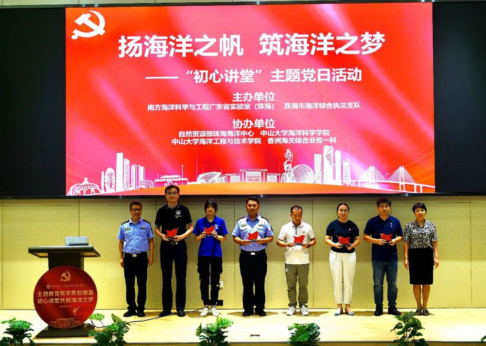 中大新聞網(wǎng)訊(通訊員張元盛、郭晨陽)為推動學(xué)習(xí)貫徹習(xí)近平新時代中國特色社會主義思想主題教育走深走實,激勵廣大黨員干部立足崗位職責、主動擔當作為,持續(xù)推進海洋工作高質(zhì)量發(fā)展,6月16日下午,南方海洋實驗室黨委聯(lián)合珠海市海洋綜合執(zhí)法支隊、自然資源部珠海海洋中心、香洲海關(guān)、中山大學(xué)海洋科學(xué)學(xué)院和海洋工程與技術(shù)學(xué)院等相關(guān)涉海單位黨組織舉辦以“揚海洋之帆,筑海洋之夢”為主題的“初心講堂”黨日活動。珠海市海洋綜合執(zhí)法支隊黨委書記、政委袁學(xué)軍,自然資源部珠海海洋中心黨委副書記、主任魏春雷,香洲海關(guān)副關(guān)長郭永生,南方海洋實驗室黨委書記劉梅、黨委副書記方綿等一百三十余名黨員參加此次活動。
