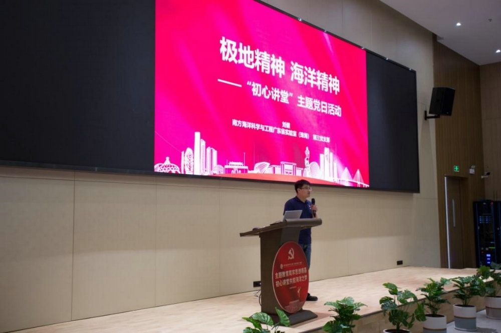 隨后,各支部黨員代表立足自身崗位,圍繞“初心”“海洋夢”等活動主題,結(jié)合自身海洋工作經(jīng)歷,分享了各自的體會感悟。他們中有“勇斗風浪、恪盡職守”的海洋綜合執(zhí)法隊員,有“與海結(jié)緣、逐夢深藍”的青年學(xué)生,有“守國門、戰(zhàn)疫情”的一線海關(guān)人,有“矢志強國、勇攀高峰”的大學(xué)教授,有“以篤行實干,守護碧海藍天”的海洋生態(tài)預(yù)警監(jiān)測調(diào)查人員,有踐行并傳承著“愛國、求實、創(chuàng)新、拼搏”極地精神的海洋科研人員。他們雖然崗位不同、經(jīng)歷不同,卻用共同的心聲,回答了同一個問題——如何在平凡的崗位中踐行共產(chǎn)黨員的初心和使命。南方海洋實驗室第三黨支部書記劉健以“極地精神、海洋精神”為主題分享了自身的海洋故事,表示在今后的工作中要具備源清流長的艱苦奮斗精神、海納百川的開放包容精神、風雨與共的團結(jié)協(xié)作精神、憑欄觀濤的求真務(wù)實精神以及勇闖天涯的開拓創(chuàng)新精神。