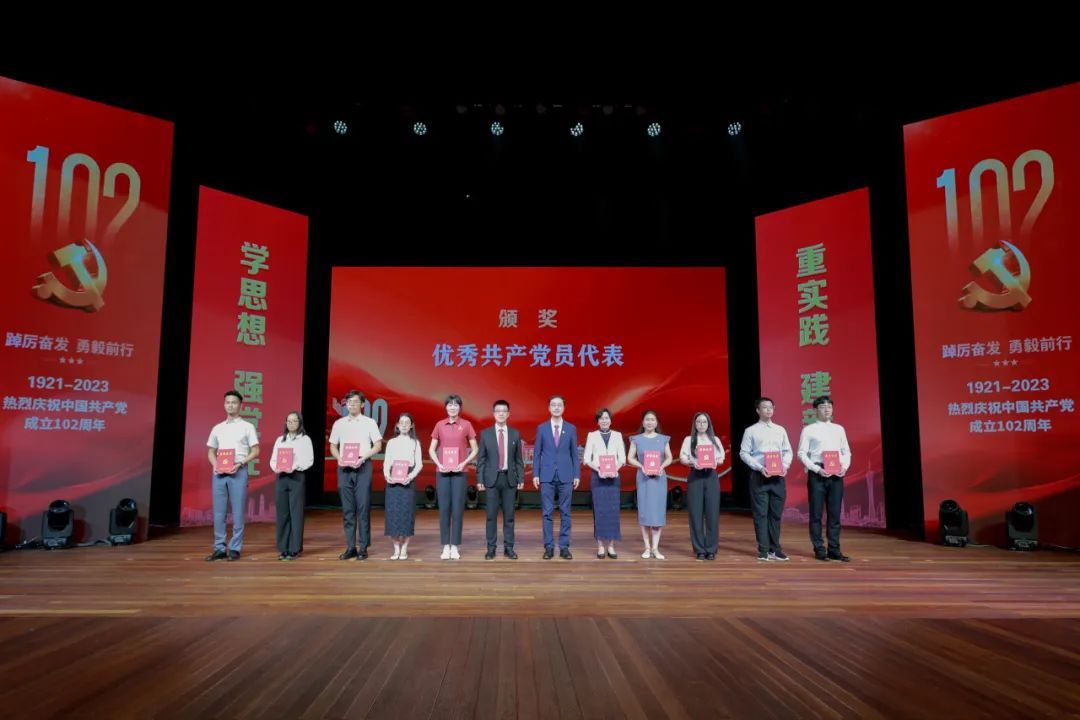 優(yōu)秀共產(chǎn)黨員代表上臺(tái)領(lǐng)獎(jiǎng)