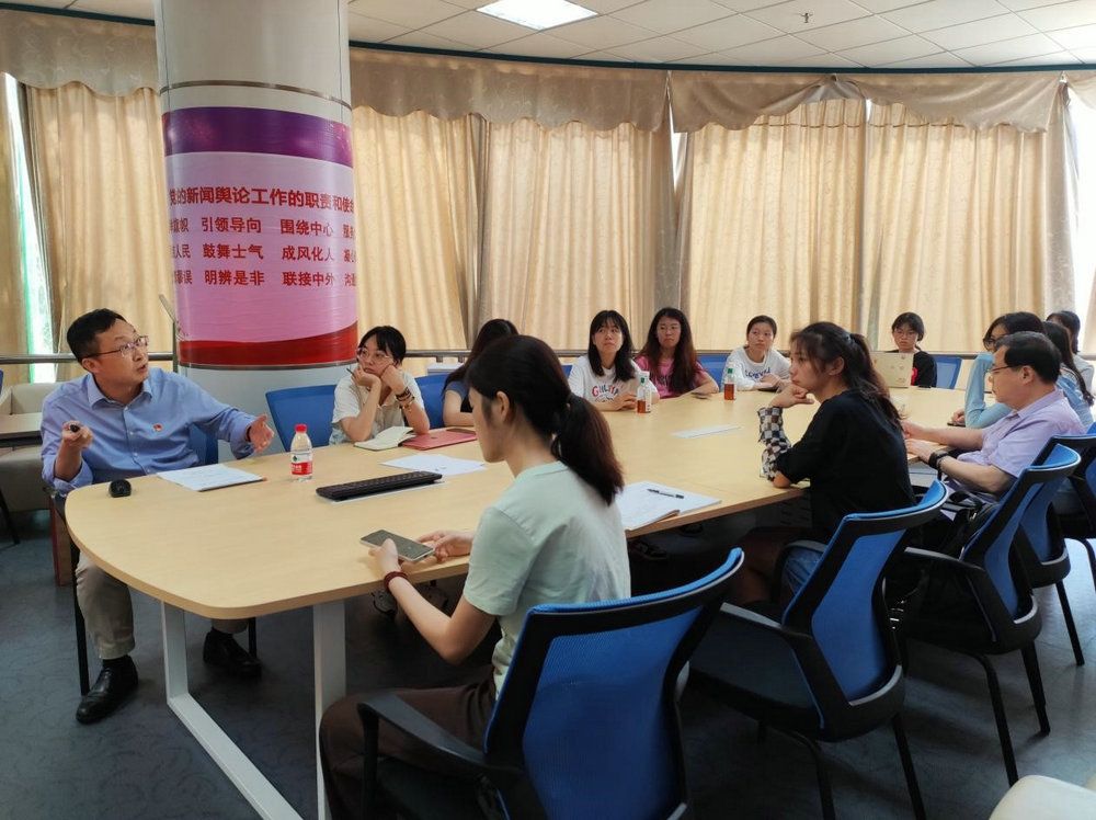 6月9日,學院黨委委員、副院長鄧理峰為新聞傳播學研究生黨支部講授了題為《意識形態(tài)工作的實踐形態(tài)及其媒介化轉(zhuǎn)向》的黨課。10日,支部同學圍繞意識形態(tài)工作和中國故事傳播,與外國語學院英語系研究生第一黨支部舉行了支部共建活動,共同探索新聞傳播專業(yè)與外國語言文化專業(yè)的交叉性與互補性。雙方黨員同學在主題教育理論學習的基礎上,就如何對外詮釋中國制度和中國文化進行了學術層面的探討,將黨課學習引向了深處、落到了實處。