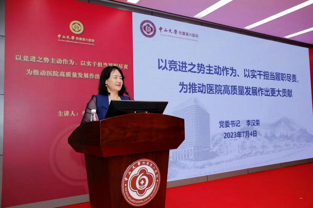 7月4日下午,附屬第六醫(yī)院黨委書(shū)記李漢榮以《以競(jìng)進(jìn)之勢(shì)主動(dòng)作為、以實(shí)干擔(dān)當(dāng)履職盡責(zé),為推動(dòng)醫(yī)院高質(zhì)量發(fā)展作出更大貢獻(xiàn)》為題,面向醫(yī)院各行政后勤教職工黨支部黨員、中層干部代表,講授主題教育專(zhuān)題黨課。中山大學(xué)主題教育巡回指導(dǎo)組第九組成員、中山大學(xué)黨委巡視工作辦公室專(zhuān)職巡視員胡國(guó)方出席會(huì)議。