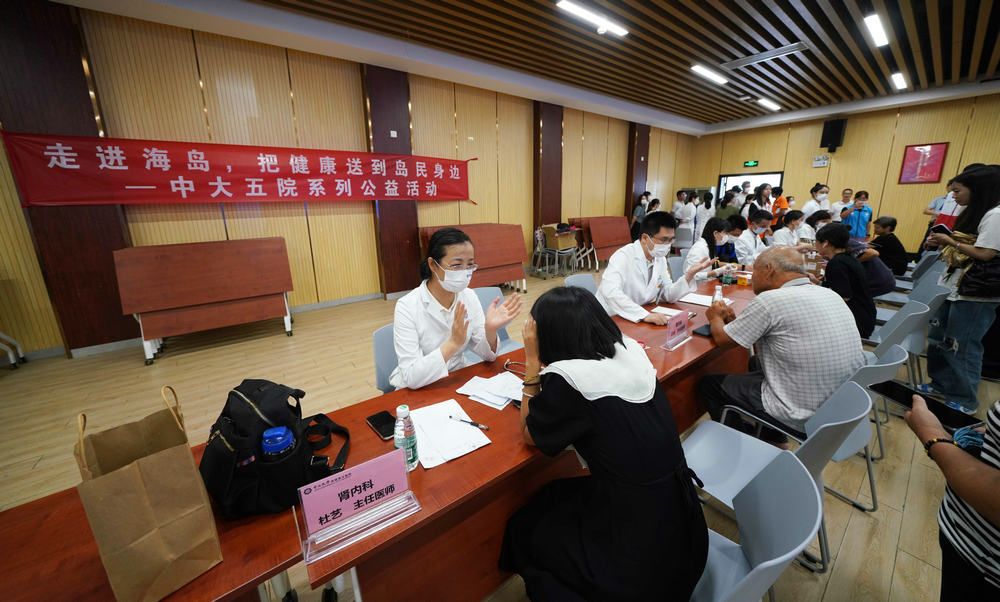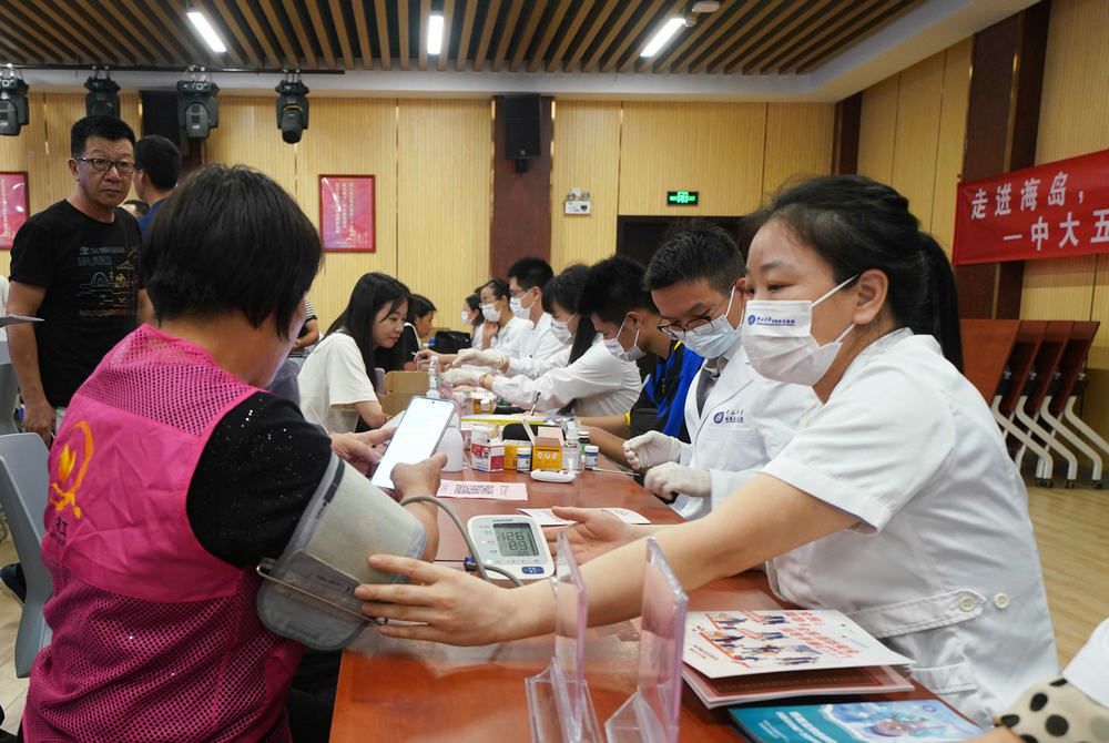隨后,腎內(nèi)科、呼吸與危重癥醫(yī)學(xué)科、肝膽外科、藥學(xué)部、超聲科等科室醫(yī)務(wù)人員為海島居民提供了疾病咨詢,超聲檢查,血壓、血糖、尿酸測(cè)量,健康知識(shí)科普及免費(fèi)藥品派送等義診服務(wù)。專家們?cè)敿?xì)了解每個(gè)人的身體狀況及病史,根據(jù)他們的日常生活習(xí)慣和海島生活環(huán)境等因素,給予了個(gè)體化健康和用藥指導(dǎo)及保健建議。