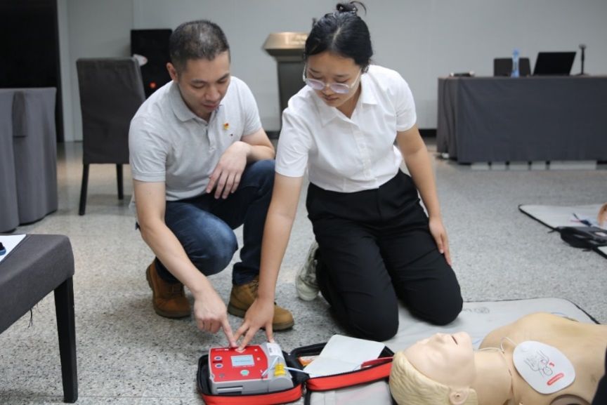 “這二十多年,我在體育西這里就遇到過4名倒地的患者,挽救了4條生命,所以說把握‘黃金4分鐘’是非常重要的?!毙蠋蜆s以自身經(jīng)歷向在座學員強調(diào)學習心肺復蘇操作流程以及AED除顫儀使用方法的重要性。