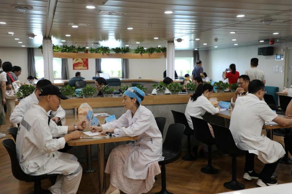 主題教育開展期間,科考中心黨支部與船員、探測部代表深入開展談心談話,了解船上工作生活情況,關切基本訴求。根據(jù)船員們普遍反映的健康檢查需求,科考中心黨支部聯(lián)合附屬第三醫(yī)院專家團隊開展義診活動。現(xiàn)場陣容龐大、項目齊全,涵蓋了內(nèi)外婦感染等30個??疲瑸榇瑔T和科考人員及家屬提供了“一站式”的名醫(yī)問診服務,專家們還根據(jù)問診人員的實際情況開具了詳細的藥方并免費派發(fā)帶來的藥品。
