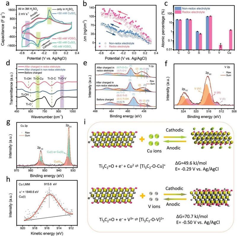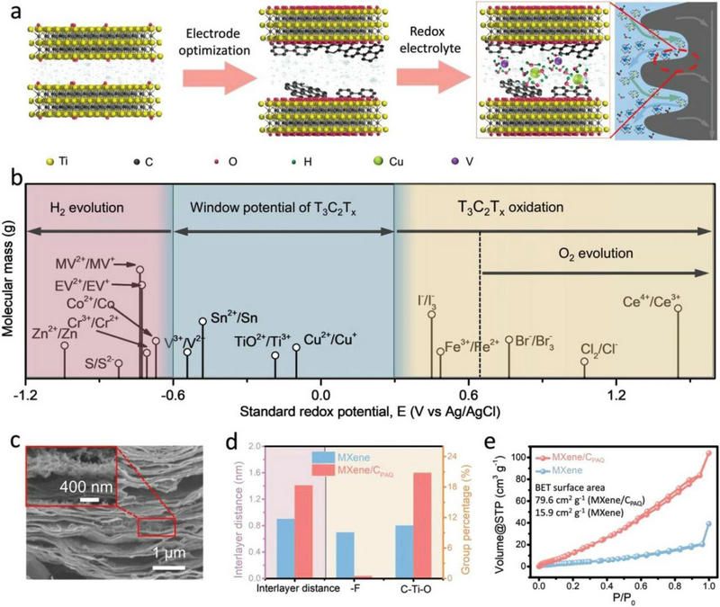 圖2. 氧化還原添加劑和Ti3C2Tx MXene相互作用機(jī)理
