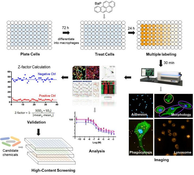 圖4 高內(nèi)涵篩選系統(tǒng)檢測免疫毒性的一般工作流程