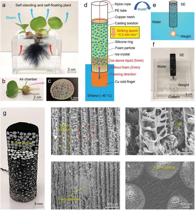 圖2 太陽能驅動蒸發(fā)器的構筑及其微結構。