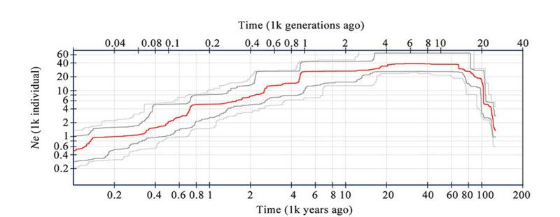 圖3 基于RAD-seq數據對過去20萬年以來丹霞梧桐有效群體大小變化的推斷