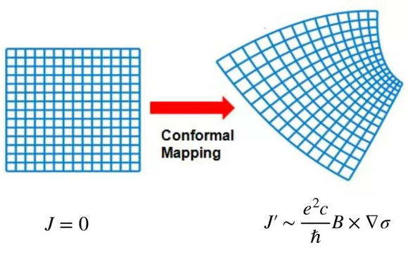 一開始三位同學(xué)對這個問題都感到比較陌生,對一些相關(guān)的知識也不夠了解,但在苗榮欣副教授的指導(dǎo)下,通過學(xué)習(xí)一些初級的廣義相對論和規(guī)范引力對偶的基礎(chǔ)知識以及和老師的積極交流,課題小組的同學(xué)最終推導(dǎo)出了反常電流的一般形式。主要結(jié)果如下圖所示: 其左圖為有背景磁場的平坦時空,其電流為零。右圖為共形變換后新的時空。由于量子反常,新時空中的電流不再為零,而是正比于磁場和共形因子的梯度。