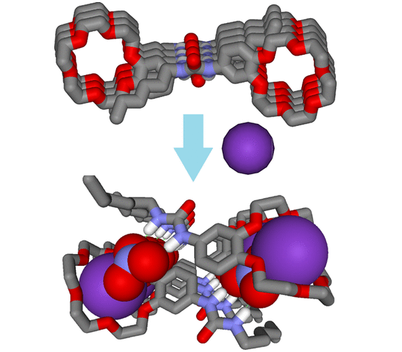 自然界存在許多性能優(yōu)異的跨膜蛋白通道可以高速度和高選擇性使脂質(zhì)雙層上的陽離子進(jìn)行傳輸。受自然界的啟發(fā),科學(xué)家們開發(fā)了模擬人工離子通道的簡化模型,以研究跨膜傳輸?shù)尿?qū)動因素及其在藥物、生物材料開發(fā)方面的潛在應(yīng)用。其中自然鉀離子通道蛋白除了鉀離子外不允許其他陽離子通過,呈現(xiàn)高的運載鉀離子速率和選擇性。這種高度選擇性是自然通道蛋白運輸效果的重要決定因素,因此,吸引了很多化學(xué)家的研究興趣。在已經(jīng)報道的研究結(jié)果中,很多報道的人工鉀離子通道并未重視K+/Na+的高選擇性通過問題。通常來說,金屬陽離子選擇性是由陽離子脫水損耗的能量與離子得到補償?shù)哪芰勘戎禌Q定的。