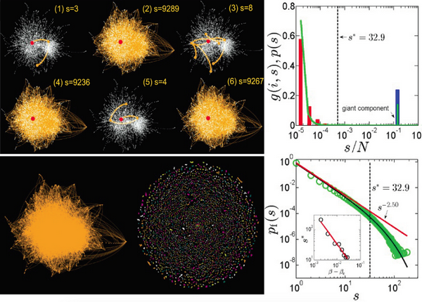 值得一提的是,該成果未發(fā)表之前,掛在Arxiv上的版本已經(jīng)被綜述性雜志Physics Reports(IF:22)上的文章做了詳細(xì)介紹,評價其結(jié)果為:“利用SIR家族傳播動力學(xué)與邊滲流的關(guān),胡等發(fā)現(xiàn)了SIR家族傳播動力學(xué)中的核心規(guī)律—傳播結(jié)果只能為兩個狀態(tài)之一:一個為局部態(tài),另一個為全局態(tài)。這個發(fā)現(xiàn)是非常深刻的,而且激動人心,一個節(jié)點或者一組節(jié)點的全局影響力只用局部網(wǎng)絡(luò)信息就可以精確度量?!?/p>