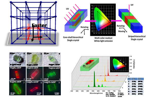 近年來,基于超分子化學的組裝理念,構筑具有有序高級結構和復雜功能特性的新物質、新材料、新器件的研究引起了廣泛的關注,并在光、電、磁、吸附、催化等諸多領域帶來一系列突破性和開創(chuàng)性的進展。其中,利用“自下而上”的構筑策略,在有序配位空間內,合理預設、配置和優(yōu)化金屬與配體的多中心結構與光功能基元,組裝具有多組分、多層次、多功能特性的單晶相金屬-有機配位光學材料,既可體現配位超分子作為結構組裝平臺的獨特空間集成與匹配協(xié)同效應,又可帶來不同于各簡單功能基元的可控復合、疊加與可調變光學性能,從而為獲得新型光調控、光響應、光轉換型光功能復合材料,并在全色域發(fā)光、照明、顯示、傳感、防偽等諸多領域實現微型芯片化、器件化提供了新的途徑。